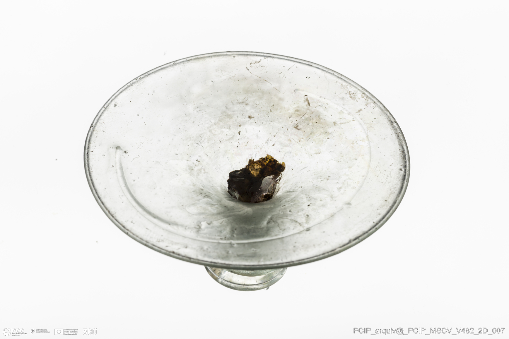 Matéria/Técnica: Vidro; Cronologia: Século XVII; Autoria: Desconhecida; Dimensões: Diâmetro Base: 76mm.