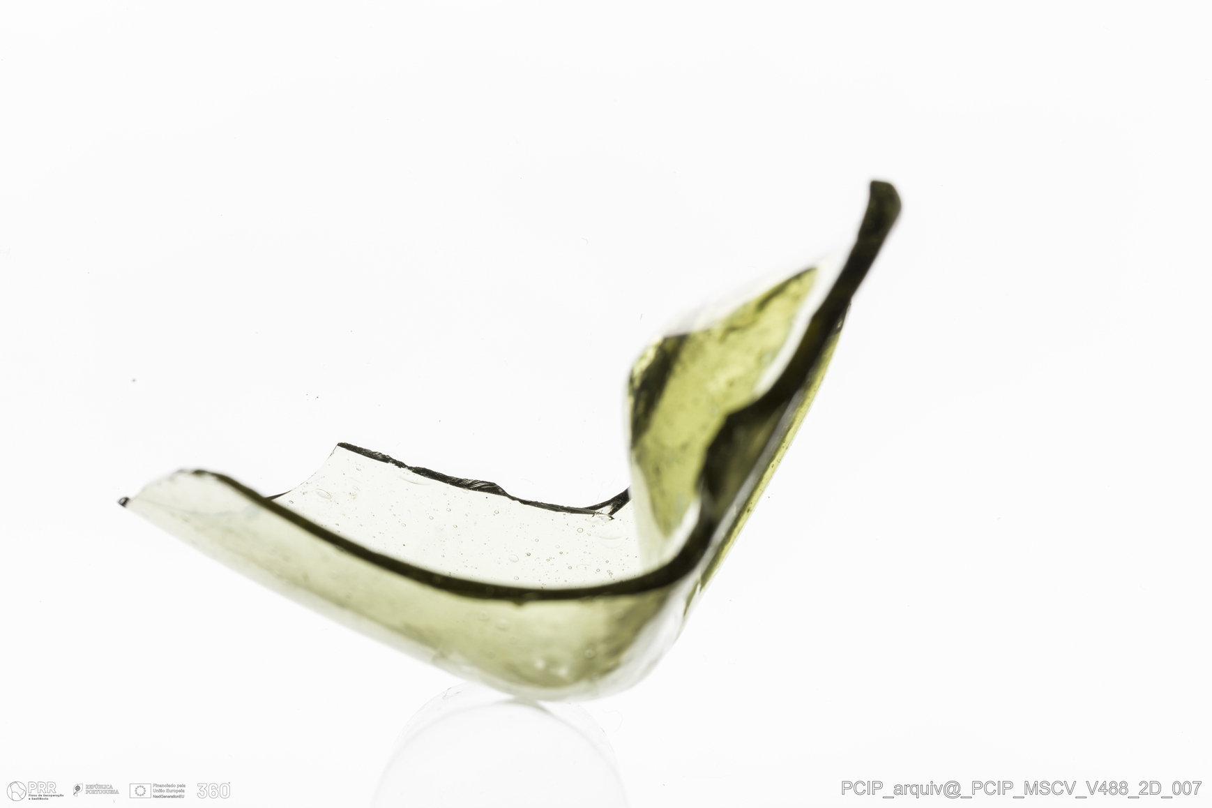 Matéria/Técnica: Vidro; Cronologia: Século XVII; Autoria: Desconhecida; Dimensões: Altura: 58mm; Largura: 45mm.