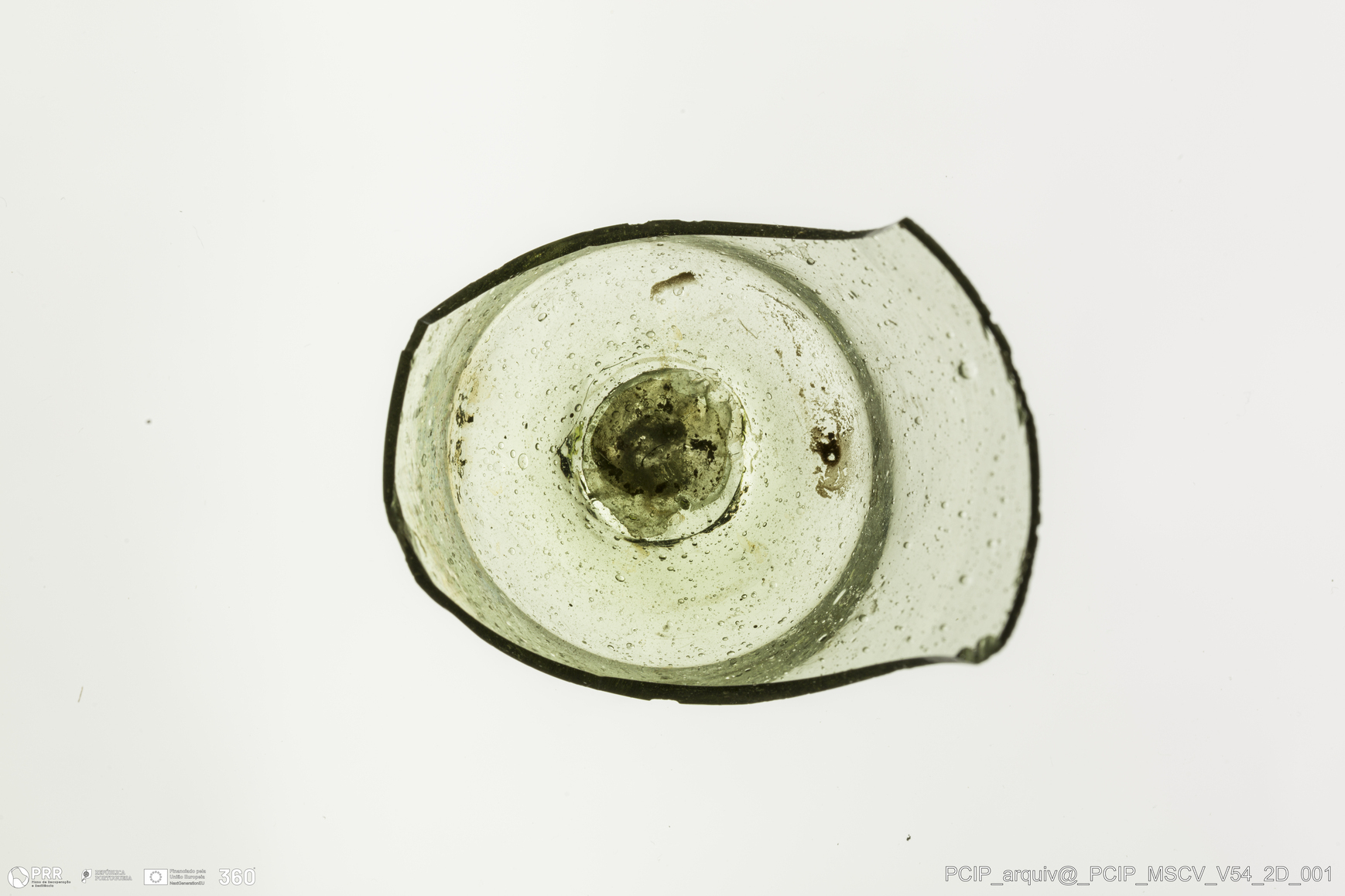 Matéria/Técnica: Vidro; Cronologia: Século XVII; Autoria: Desconhecida; Dimensões: Diâmetro base: 30mm.