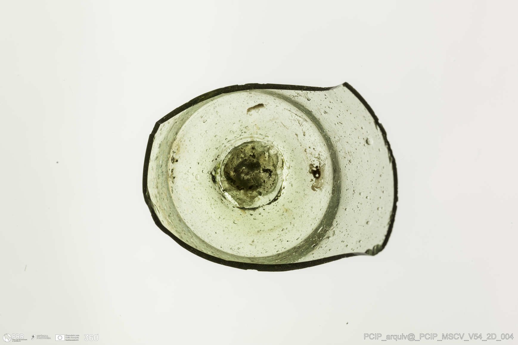 Matéria/Técnica: Vidro; Cronologia: Século XVII; Autoria: Desconhecida; Dimensões: Diâmetro base: 30mm.