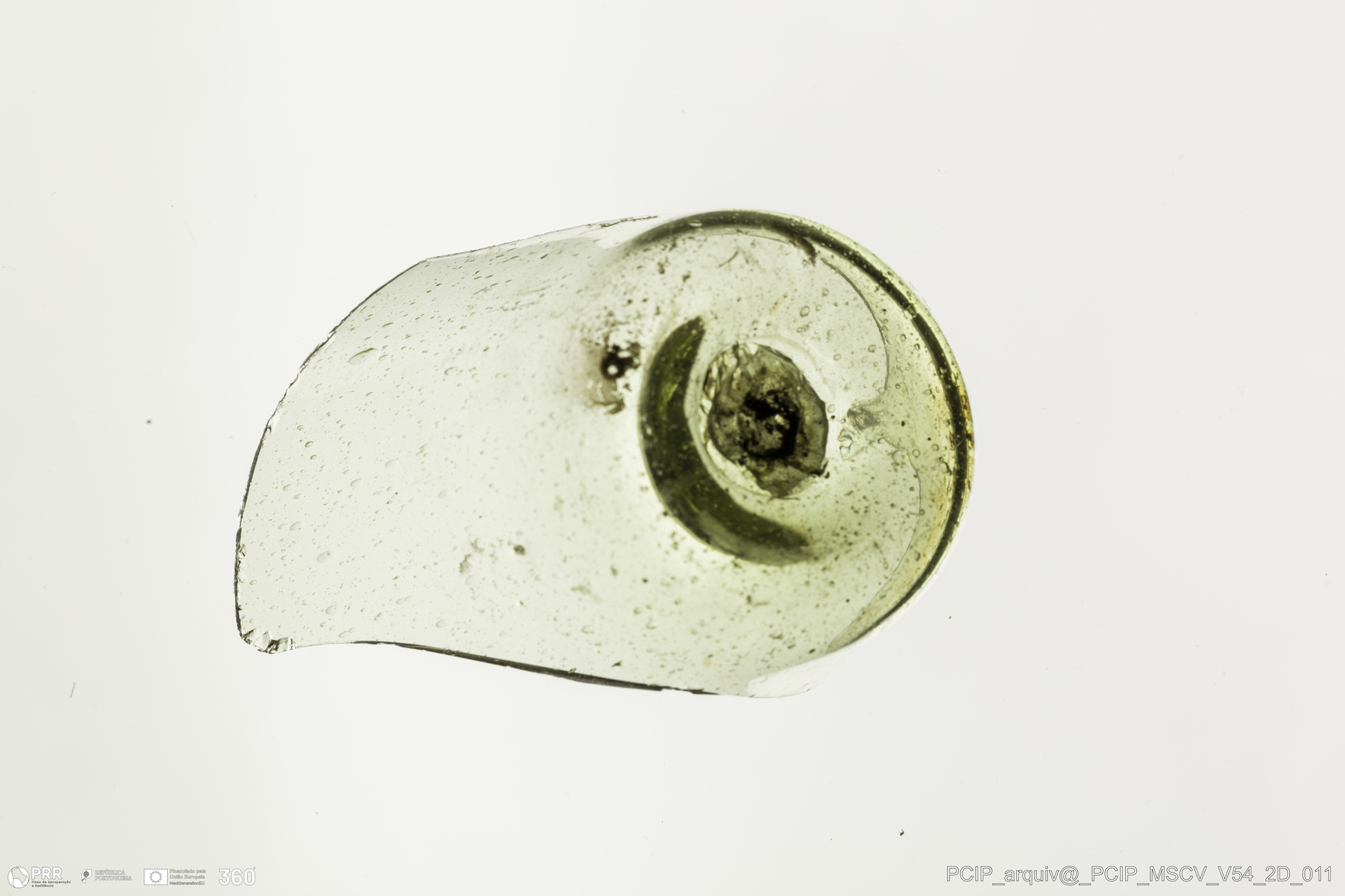 Matéria/Técnica: Vidro; Cronologia: Século XVII; Autoria: Desconhecida; Dimensões: Diâmetro base: 30mm.