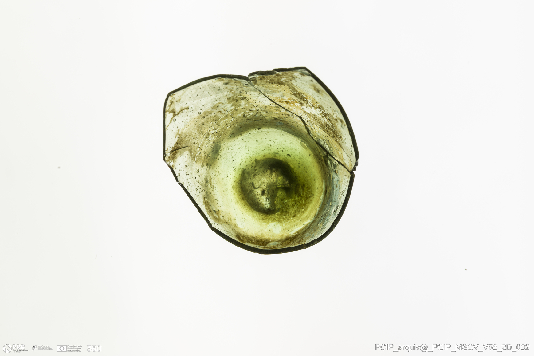 Matéria/Técnica: Vidro; Cronologia: Século XVII; Autoria: Desconhecida; Dimensões: Diâmetro base: 25mm.