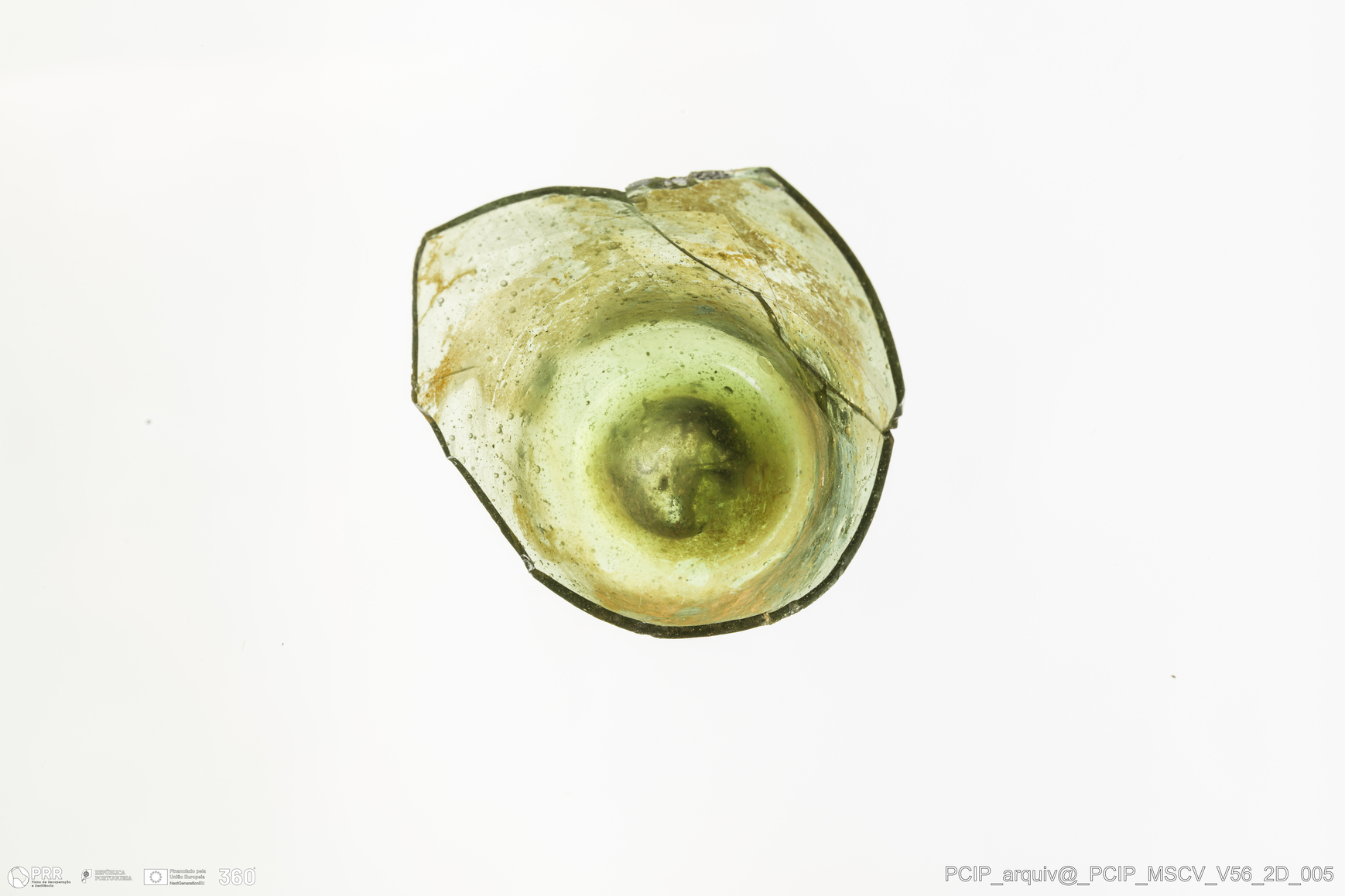 Matéria/Técnica: Vidro; Cronologia: Século XVII; Autoria: Desconhecida; Dimensões: Diâmetro base: 25mm.