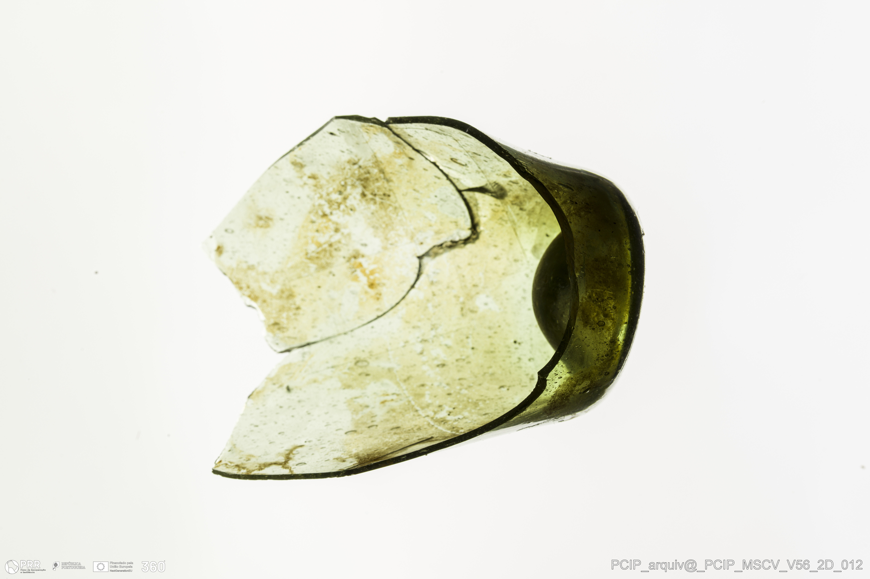 Matéria/Técnica: Vidro; Cronologia: Século XVII; Autoria: Desconhecida; Dimensões: Diâmetro base: 25mm.