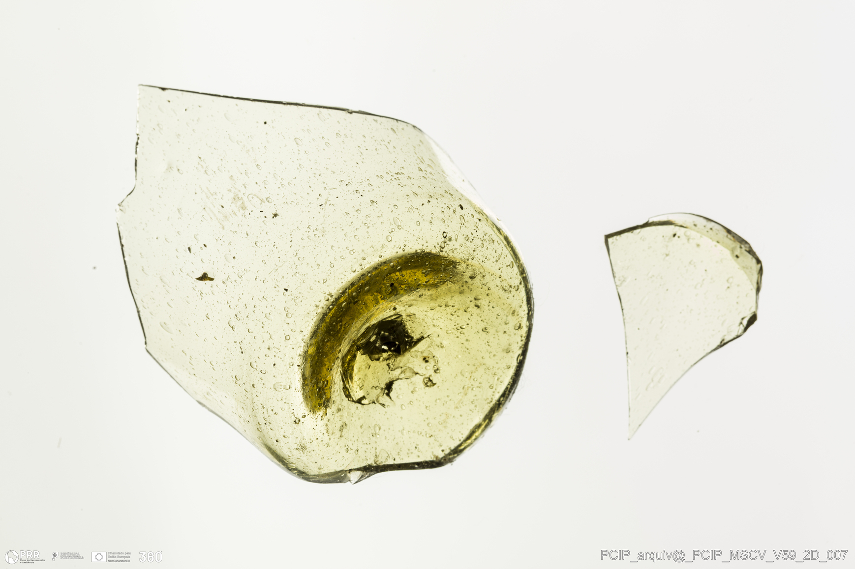 Matéria/Técnica: Vidro; Cronologia: Século XVII; Autoria: Desconhecida; Dimensões: Diâmetro base: 35mm.