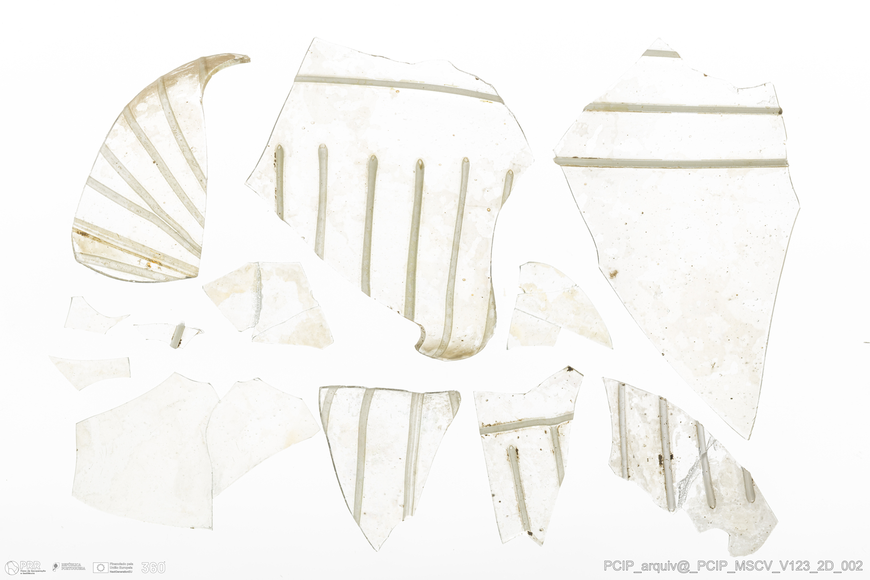 Matéria/Técnica: Vidro; Cronologia: Século XVII; Autoria: Desconhecida; Dimensões: Comprimento: 124mm; Largura: 50mm.