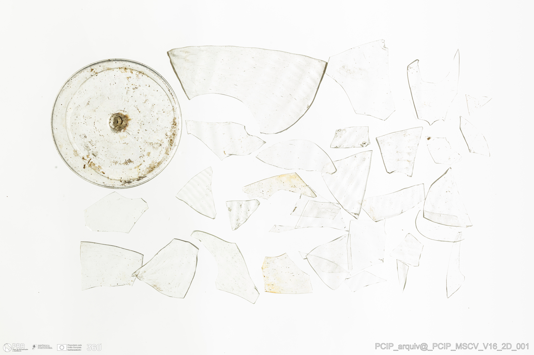 Matéria/Técnica: Vidro; Cronologia: Século XVII; Autoria: Desconhecida; Dimensões: Diâmetro bordo: 76mm; Diâmetro base: 61mm.