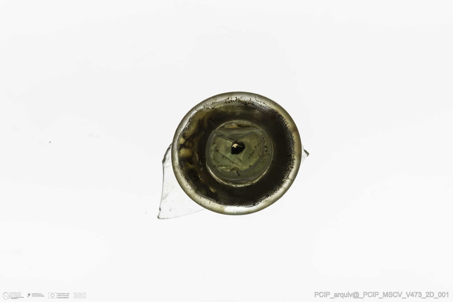 Matéria/Técnica: Vidro; Cronologia: Século XVII; Autoria: Desconhecida; Dimensões: Largura: 20mm; Altura: 21mm.