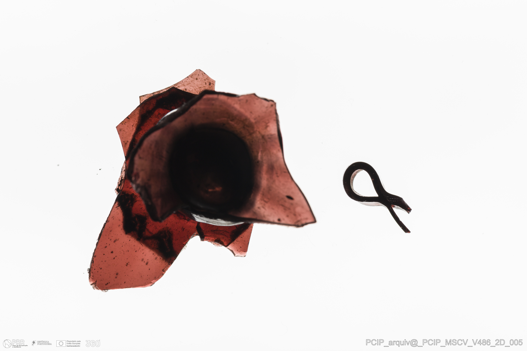 Matéria/Técnica: Vidro; Cronologia: Século XVII; Autoria: Desconhecida; Dimensões: Altura: 30mm; Largura: 38mm.