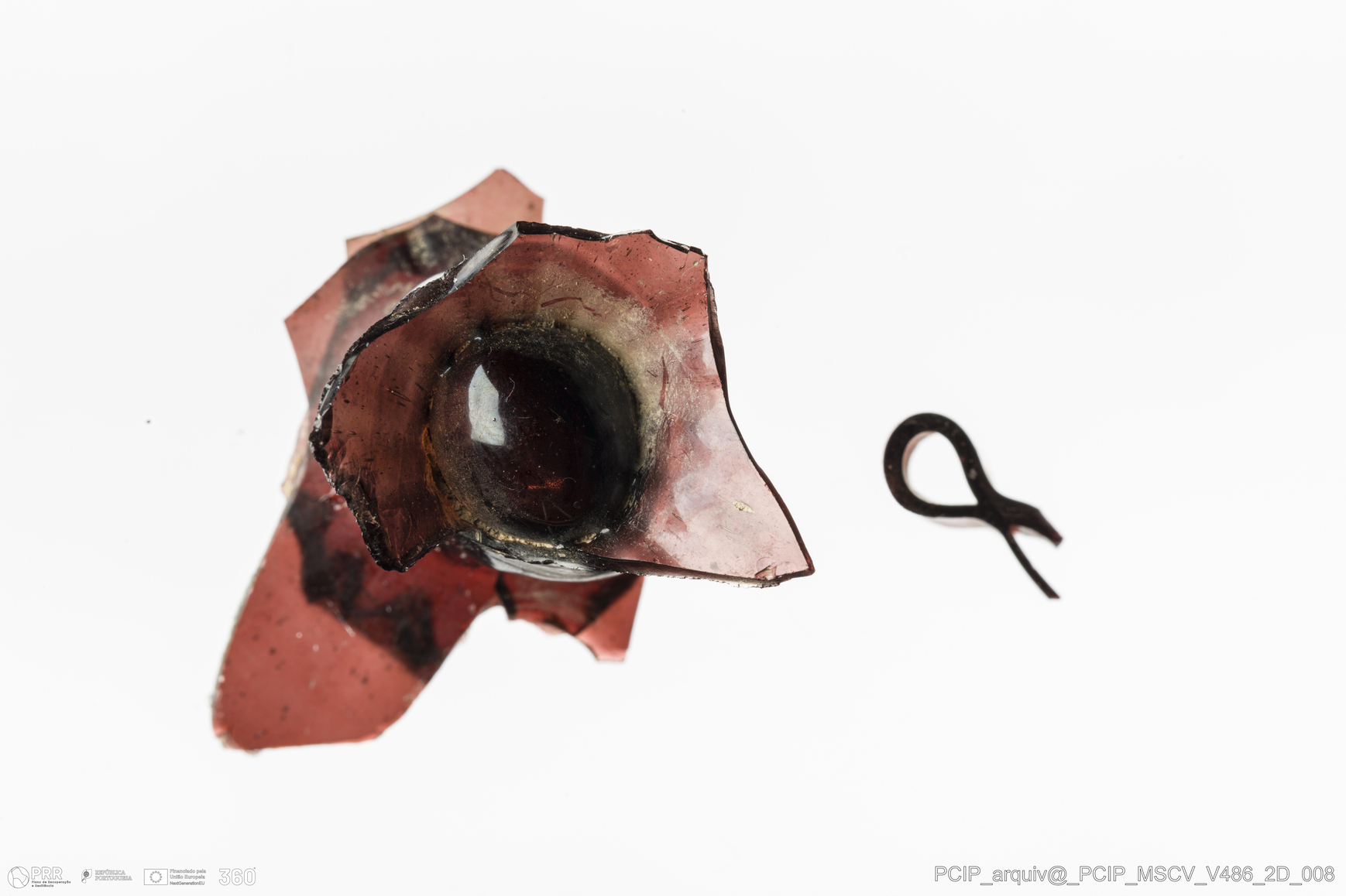 Matéria/Técnica: Vidro; Cronologia: Século XVII; Autoria: Desconhecida; Dimensões: Altura: 30mm; Largura: 38mm.