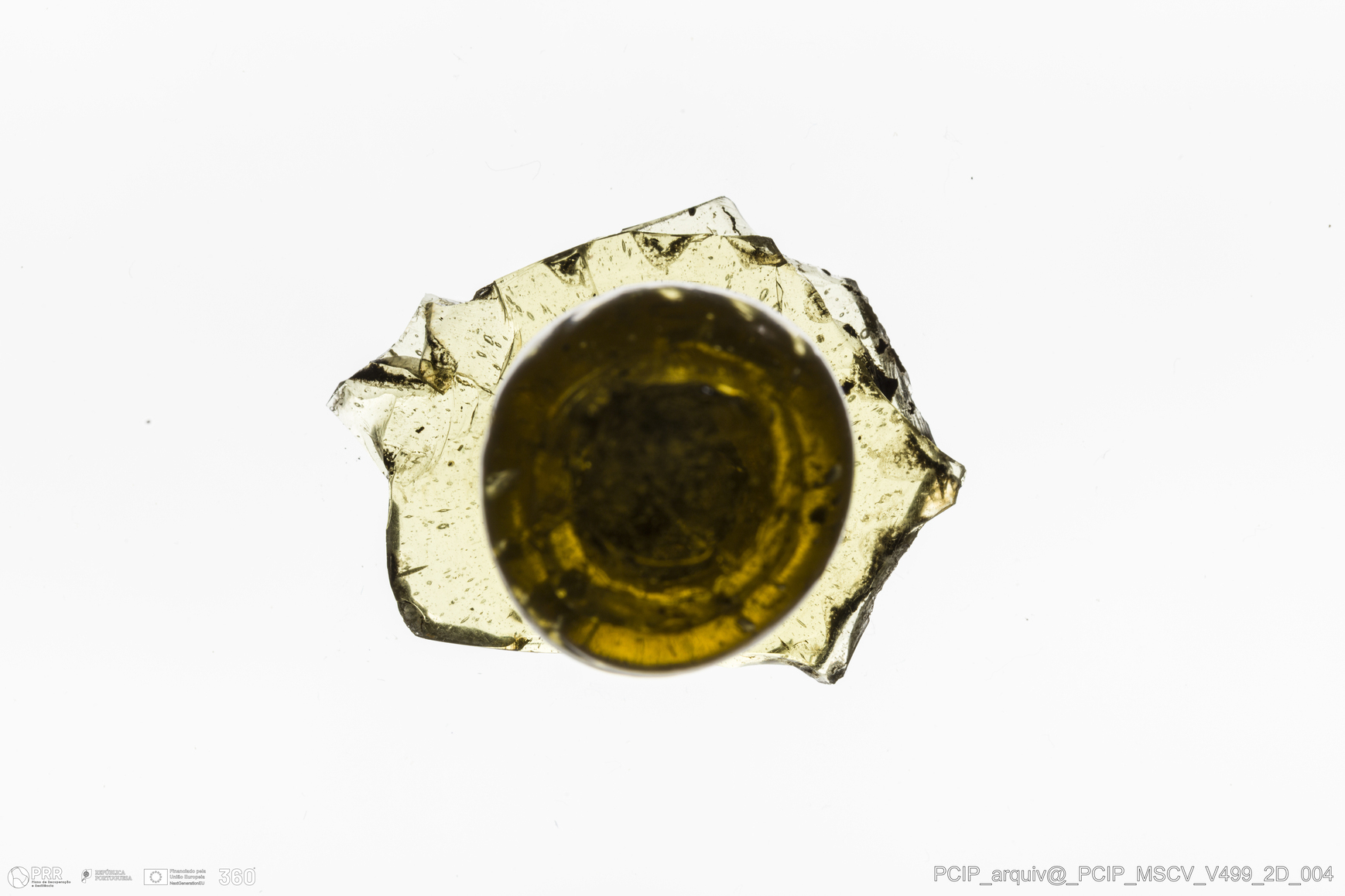 Matéria/Técnica: Vidro; Cronologia: Século XVII; Autoria: Desconhecida; Dimensões: Largura: 36mm; Altura: 30mm.