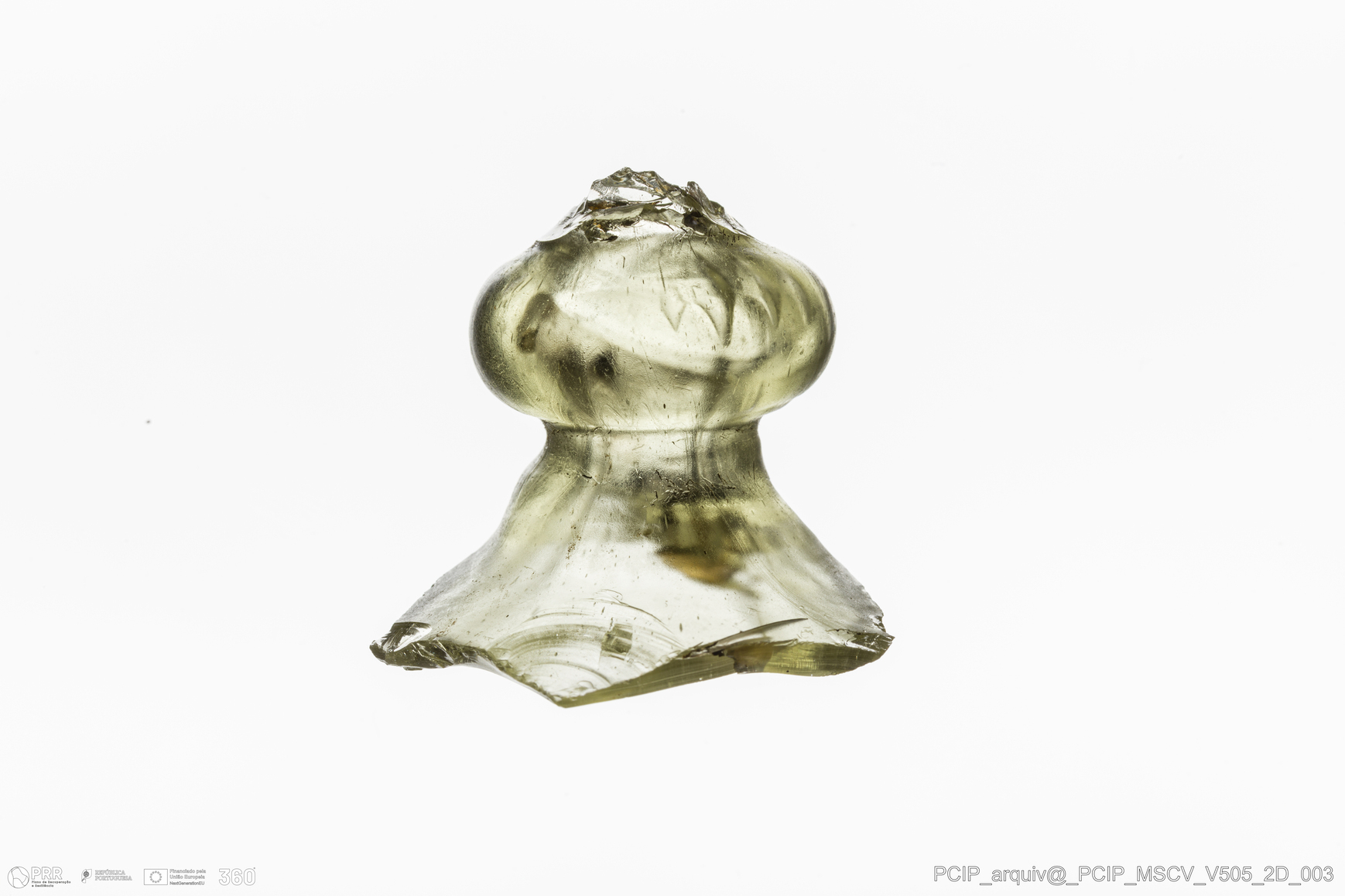 Matéria/Técnica: Vidro; Cronologia: Século XVII; Autoria: Desconhecida; Dimensões: Altura: 23mm; Largura: 22mm.