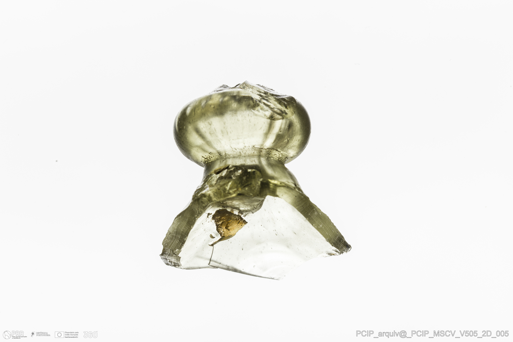Matéria/Técnica: Vidro; Cronologia: Século XVII; Autoria: Desconhecida; Dimensões: Altura: 23mm; Largura: 22mm.