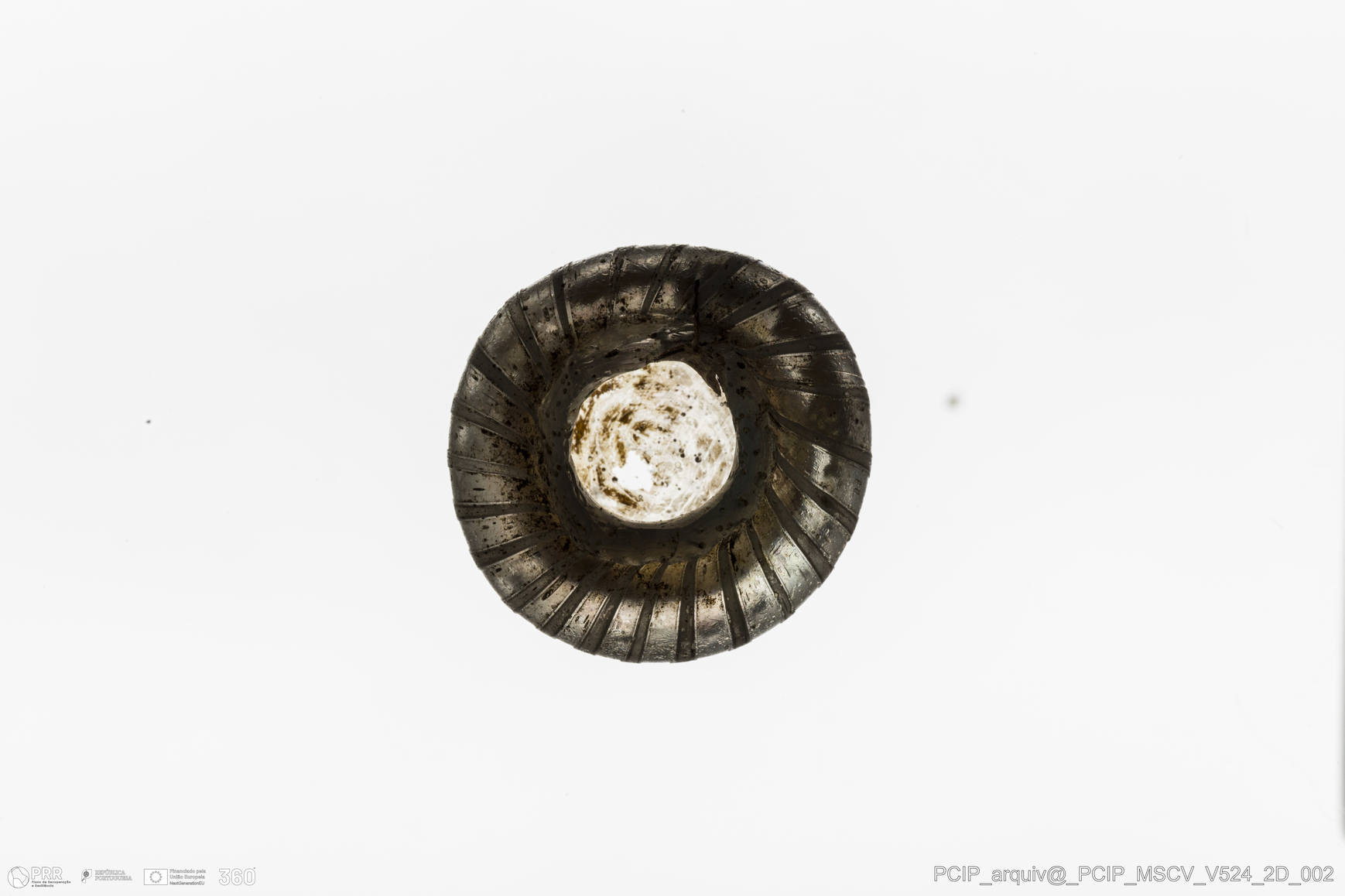 Matéria/Técnica: Vidro; Cronologia: Século XVII; Autoria: Desconhecida; Dimensões: Largura: 25mm; Altura: 14mm.