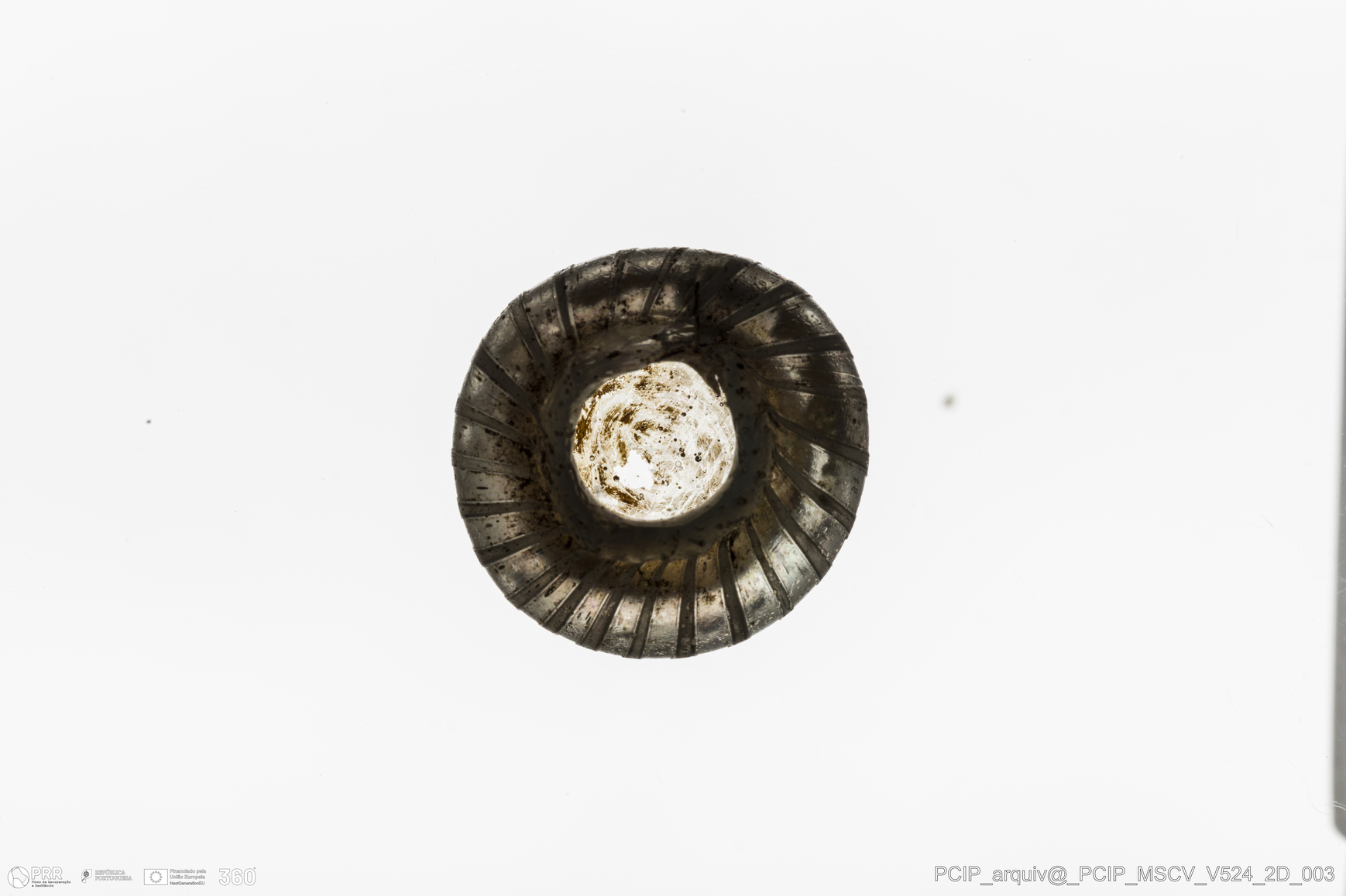Matéria/Técnica: Vidro; Cronologia: Século XVII; Autoria: Desconhecida; Dimensões: Largura: 25mm; Altura: 14mm.
