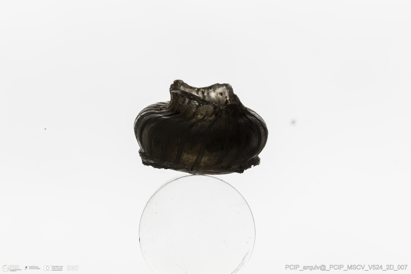 Matéria/Técnica: Vidro; Cronologia: Século XVII; Autoria: Desconhecida; Dimensões: Largura: 25mm; Altura: 14mm.