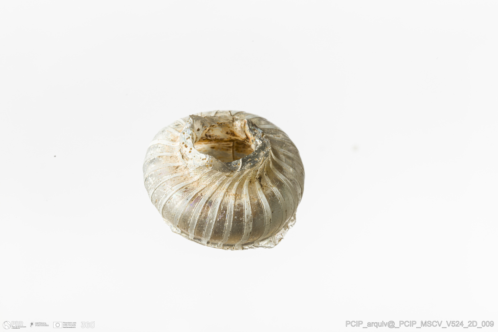 Matéria/Técnica: Vidro; Cronologia: Século XVII; Autoria: Desconhecida; Dimensões: Largura: 25mm; Altura: 14mm.