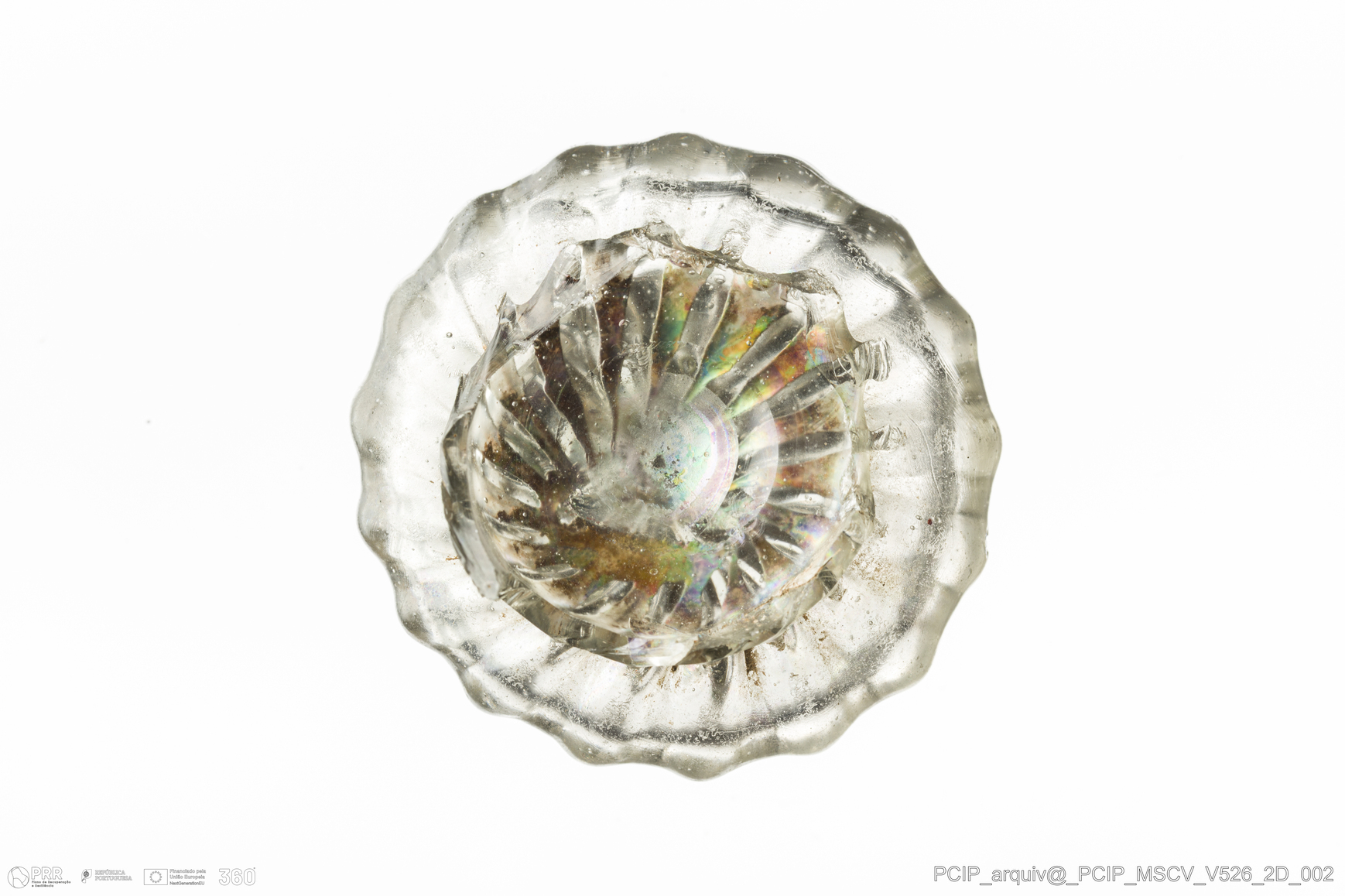 Matéria/Técnica: Vidro; Cronologia: Século XVII; Autoria: Desconhecida; Dimensões: Largura: 38mm; Altura: 25mm.