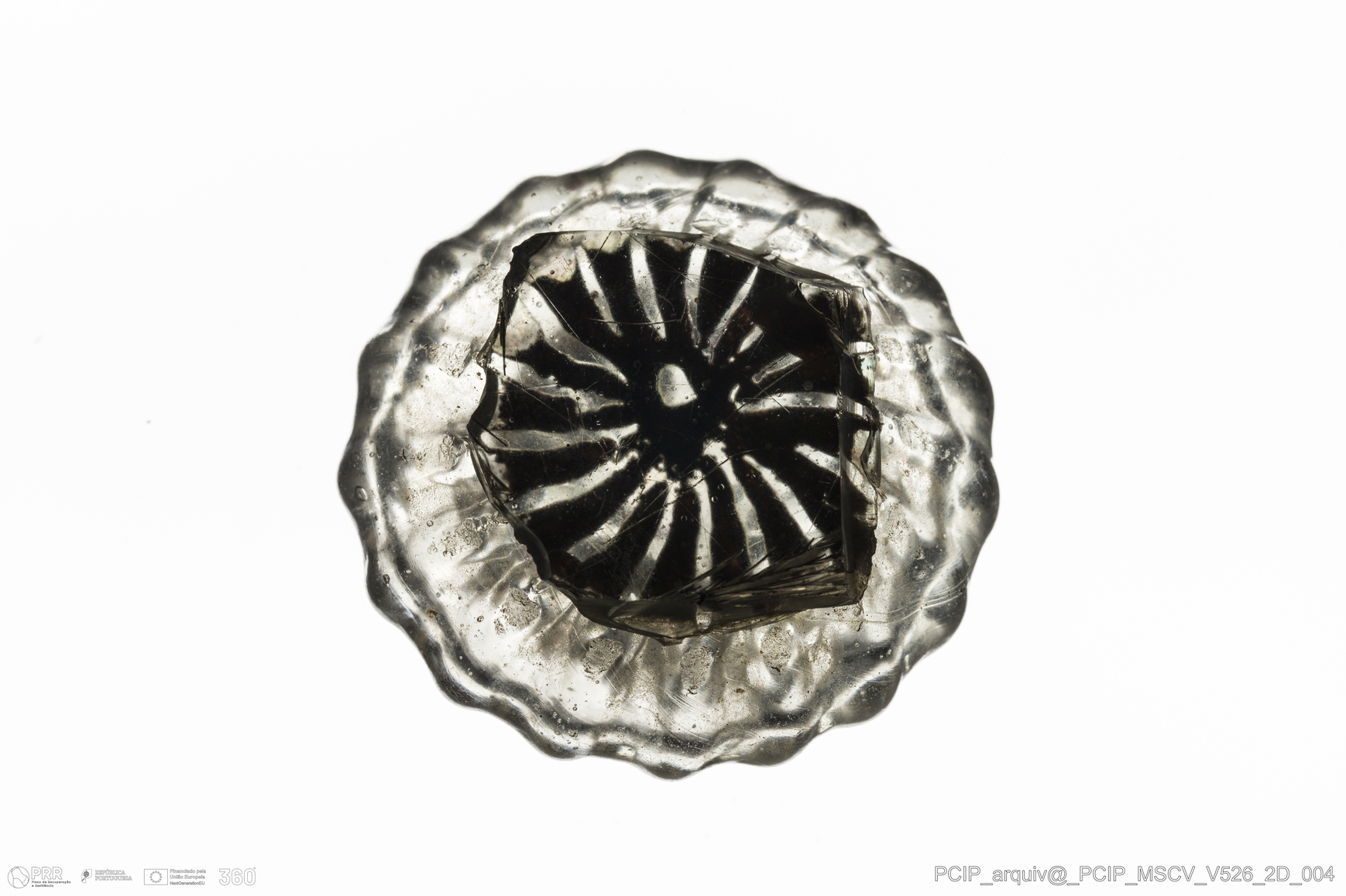 Matéria/Técnica: Vidro; Cronologia: Século XVII; Autoria: Desconhecida; Dimensões: Largura: 38mm; Altura: 25mm.