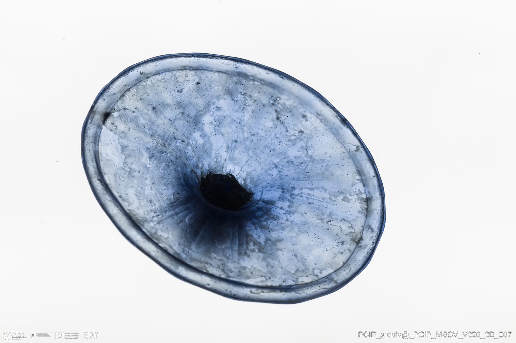Matéria/Técnica: Vidro; Cronologia: Século XVII; Autoria: Desconhecida; Dimensões: Diâmetro base: 88mm.