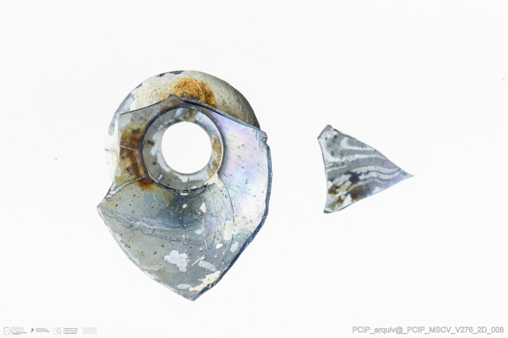 Matéria/Técnica: Vidro; Cronologia: Século XVII; Autoria: Desconhecida; Dimensões: Largura: 23mm; Altura: 26mm.
