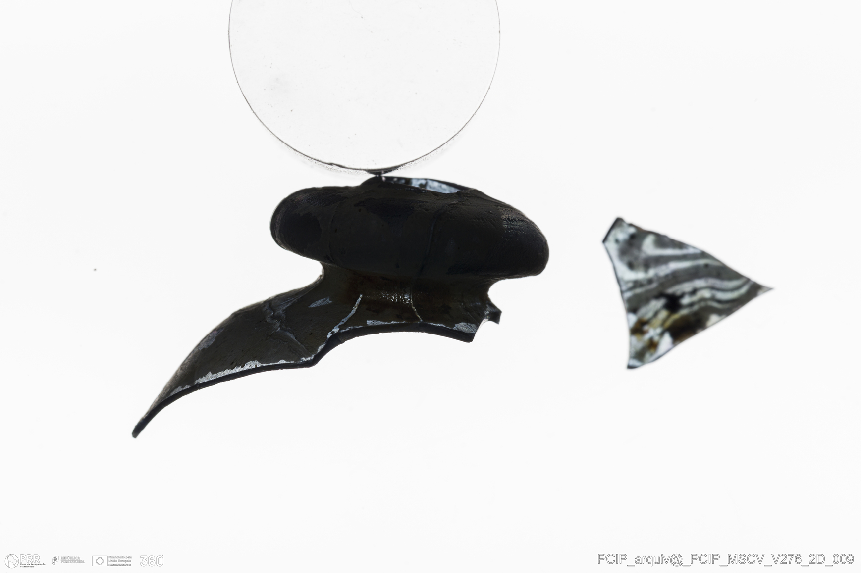 Matéria/Técnica: Vidro; Cronologia: Século XVII; Autoria: Desconhecida; Dimensões: Largura: 23mm; Altura: 26mm.