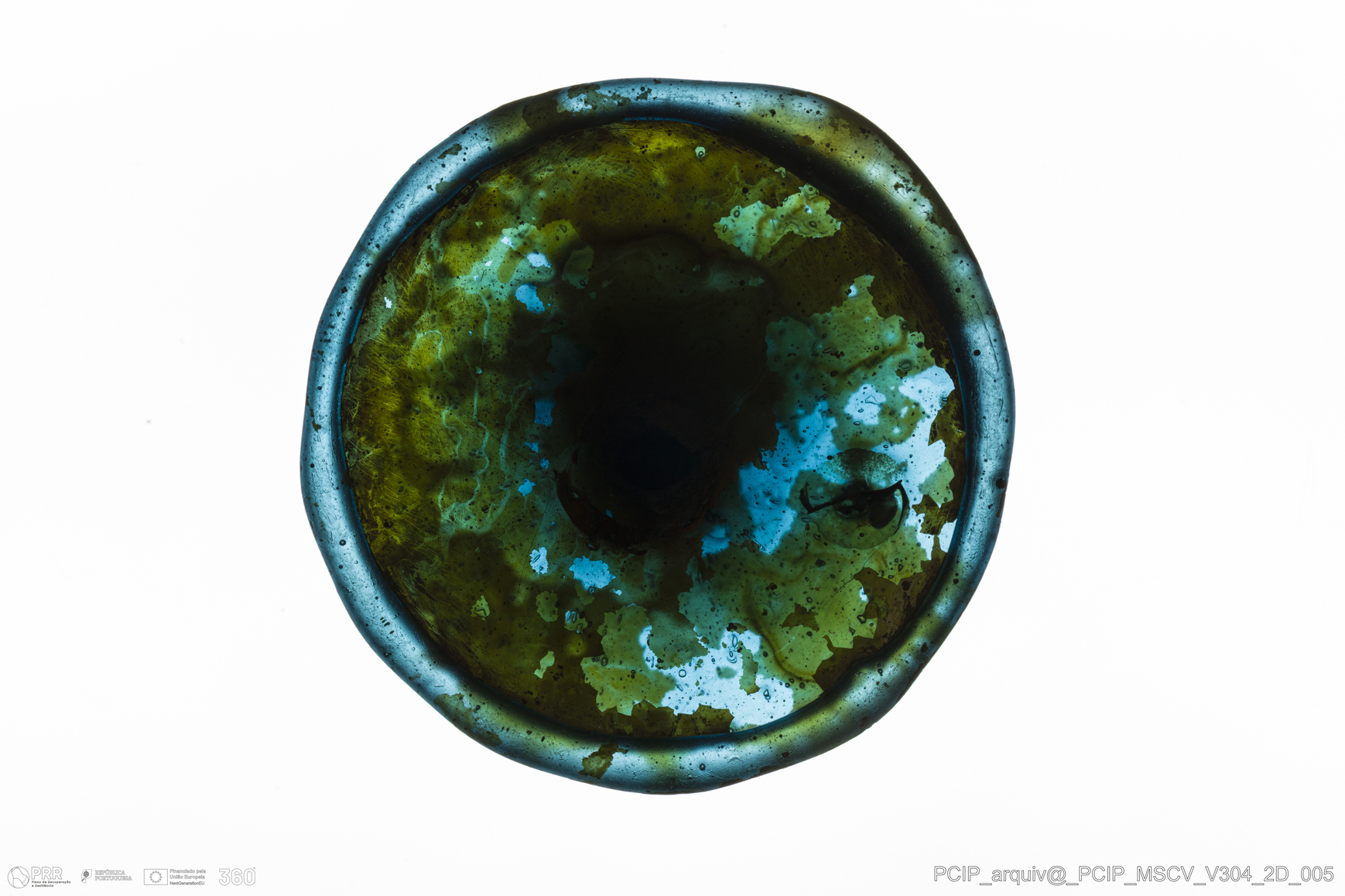 Matéria/Técnica: Vidro; Cronologia: Século XVII; Autoria: Desconhecida; Dimensões: Diâmetro base: 57mm.