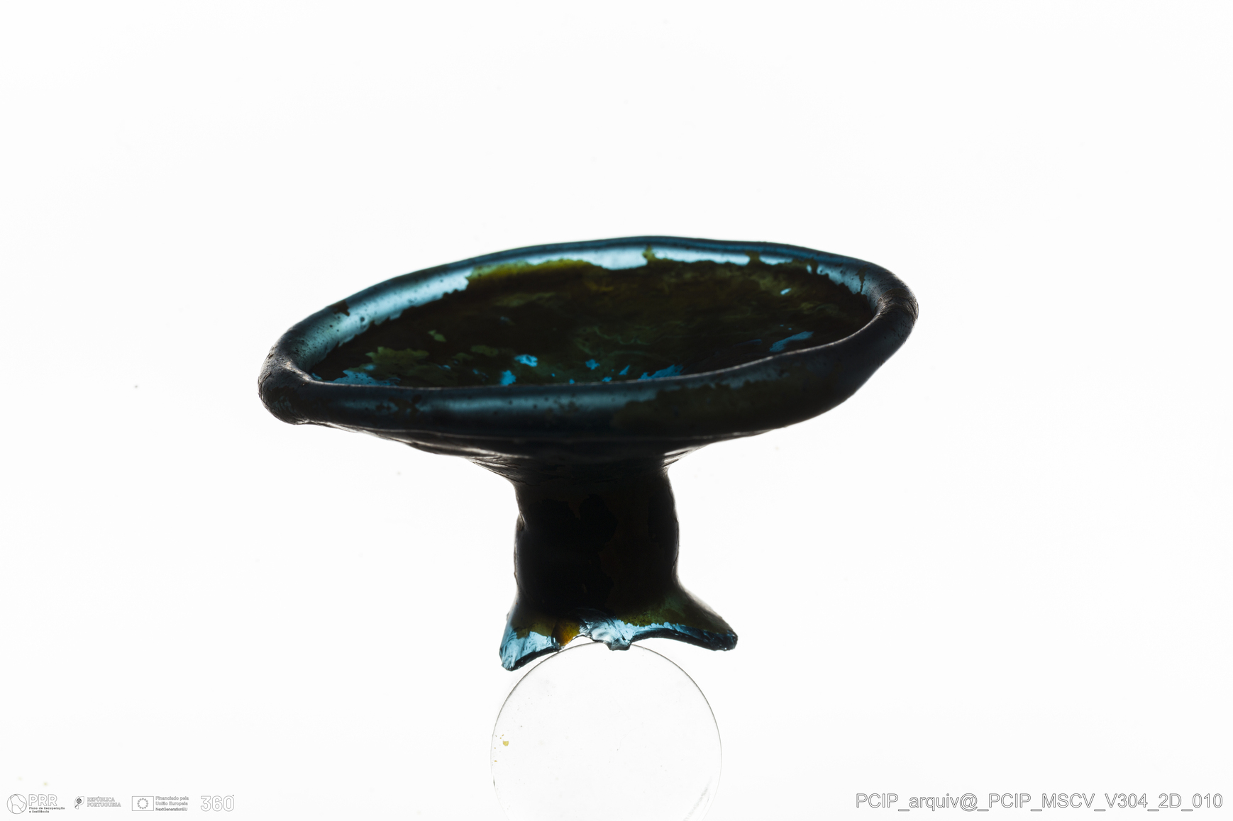 Matéria/Técnica: Vidro; Cronologia: Século XVII; Autoria: Desconhecida; Dimensões: Diâmetro base: 57mm.