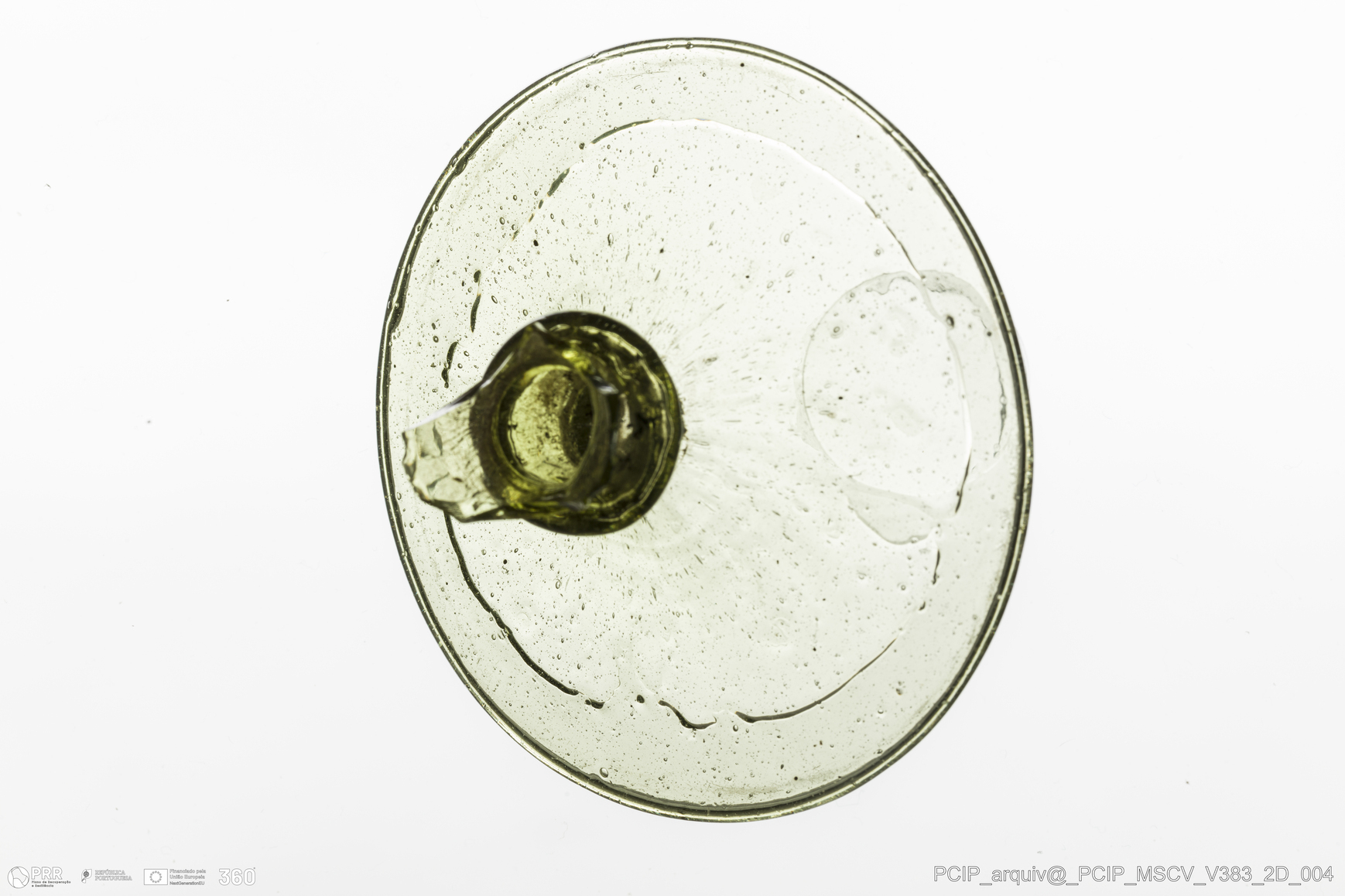 Matéria/Técnica: Vidro; Cronologia: Século XVII; Autoria: Desconhecida; Dimensões: Diâmetro base: 72mm.