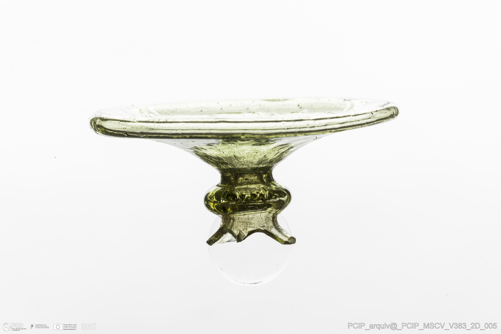 Matéria/Técnica: Vidro; Cronologia: Século XVII; Autoria: Desconhecida; Dimensões: Diâmetro base: 72mm.