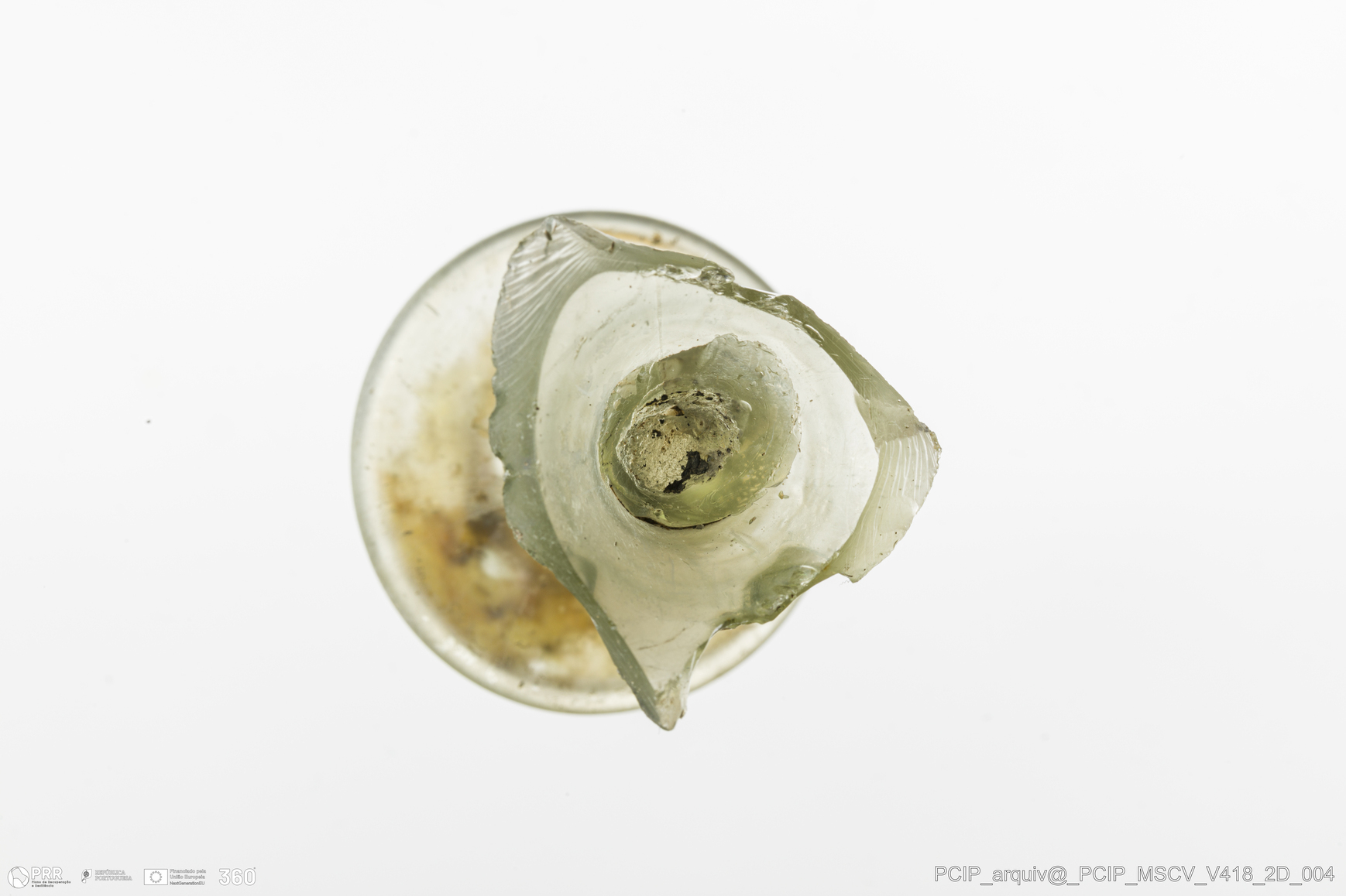 Matéria/Técnica: Vidro; Cronologia: Século XVII; Autoria: Desconhecida; Dimensões: Altura: 27mm; Largura: 25mm.