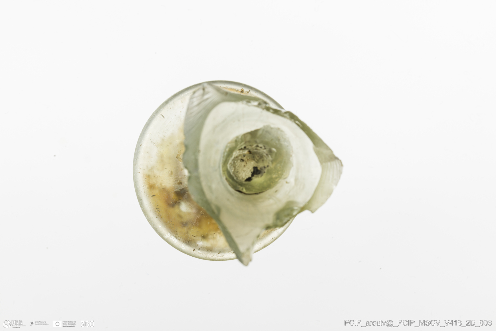 Matéria/Técnica: Vidro; Cronologia: Século XVII; Autoria: Desconhecida; Dimensões: Altura: 27mm; Largura: 25mm.