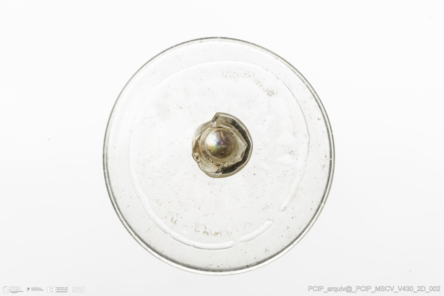 Matéria/Técnica: Vidro; Cronologia: Século XVII; Autoria: Desconhecida; Dimensões: Diâmetro base: 64mm.