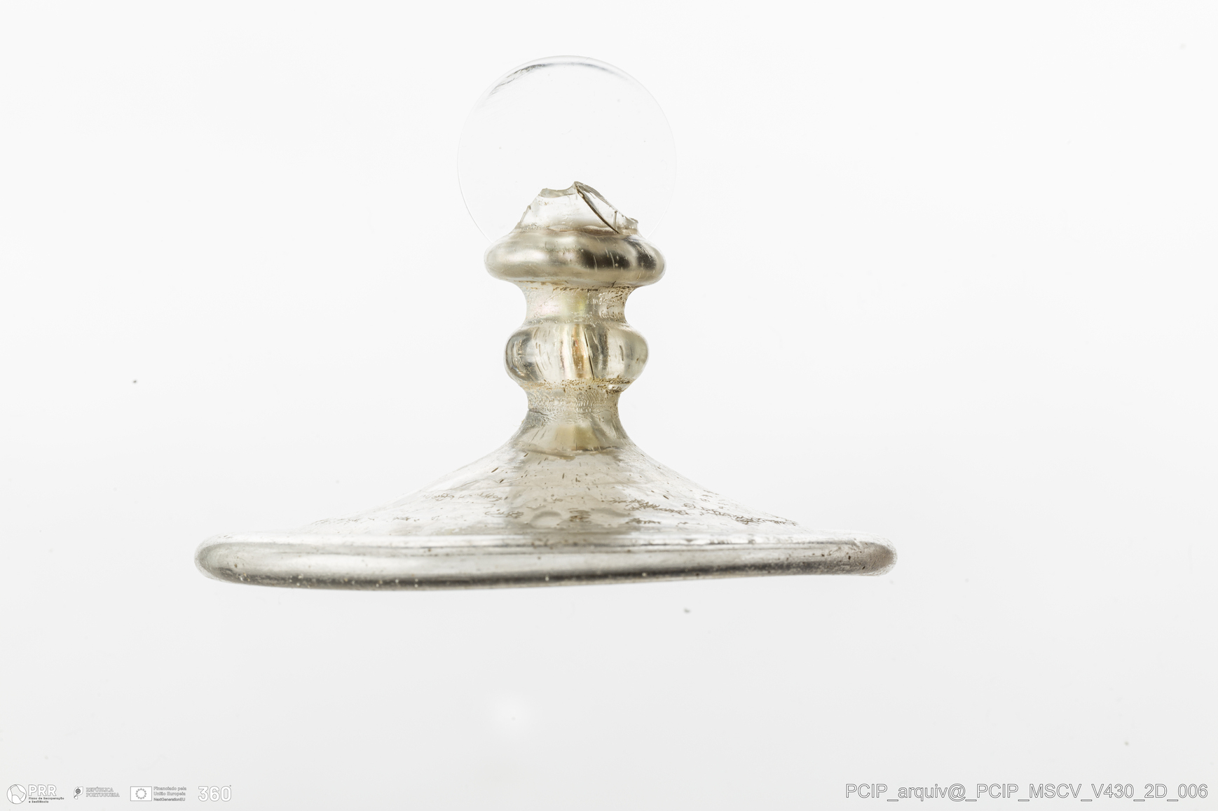 Matéria/Técnica: Vidro; Cronologia: Século XVII; Autoria: Desconhecida; Dimensões: Diâmetro base: 64mm.