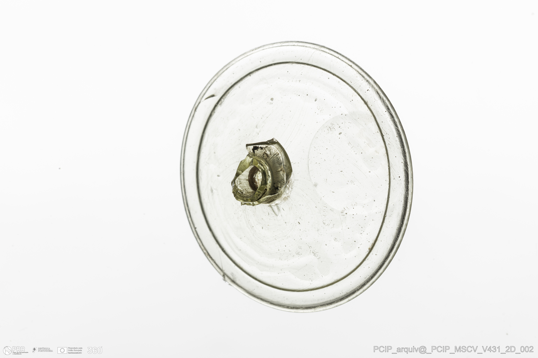 Matéria/Técnica: Vidro; Cronologia: Século XVII; Autoria: Desconhecida; Dimensões: Diâmetro base: 56mm.