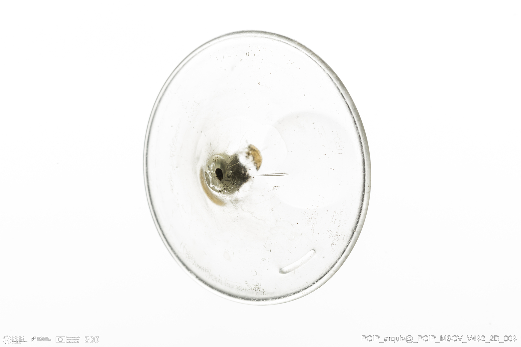 Matéria/Técnica: Vidro; Cronologia: Século XVII; Autoria: Desconhecida; Dimensões: Diâmetro base: 58mm.