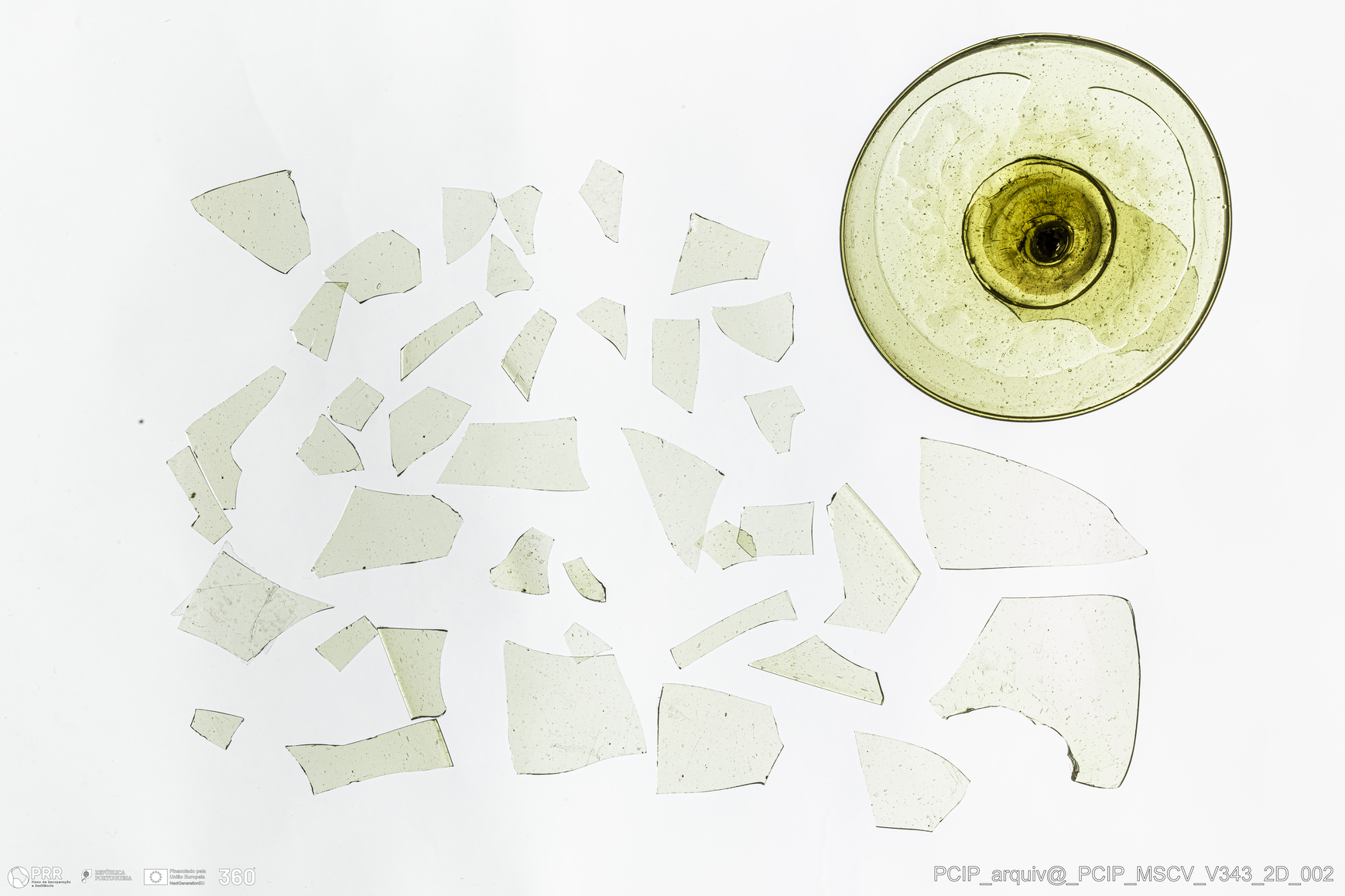 Matéria/Técnica: Vidro; Cronologia: Século XVII; Autoria: Desconhecida; Dimensões: Diâmetro Bordo: 120mm; Diâmetro base: 80mm; Altura: 110mm.