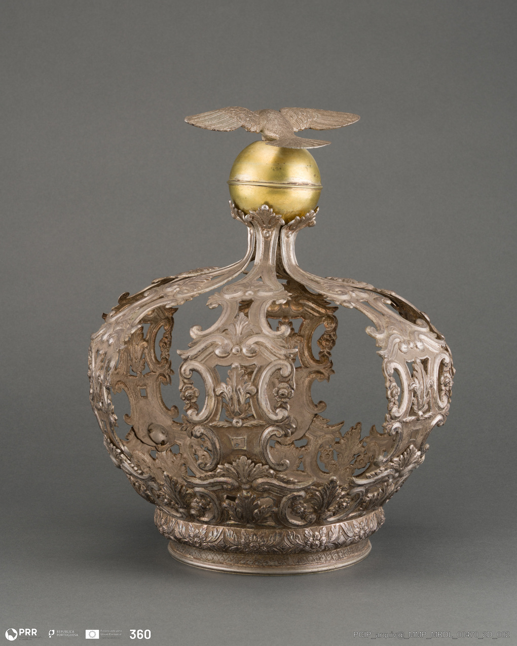 Matéria/Técnica: Prata; Cronologia: Desconhecida; Autoria: Desconhecida; Dimensões: Altura: 32,85 cm; Diâmetro: 14,90 cm; Peso: 1.264,00 gr.