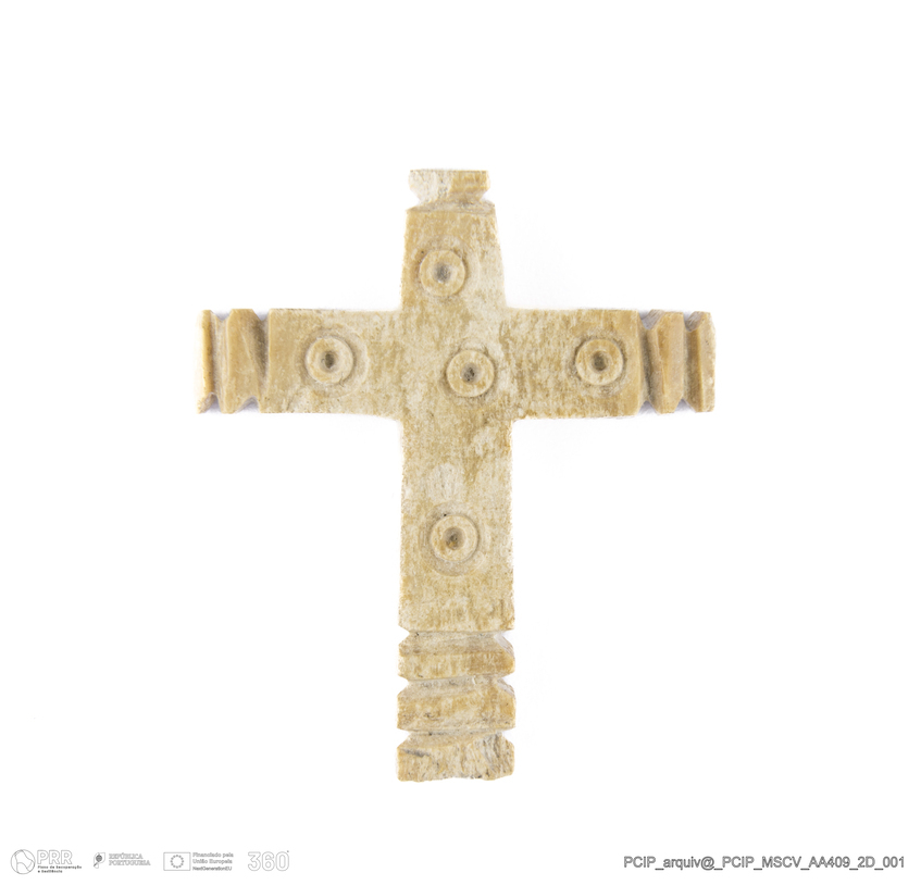 Matéria/Técnica: Osso; Cronologia: Século XVI-Século XVII; Autoria: Desconhecida; Dimensões: Comprimento: 26,5mm; Largura: 23mm; Espessura: 4mm.