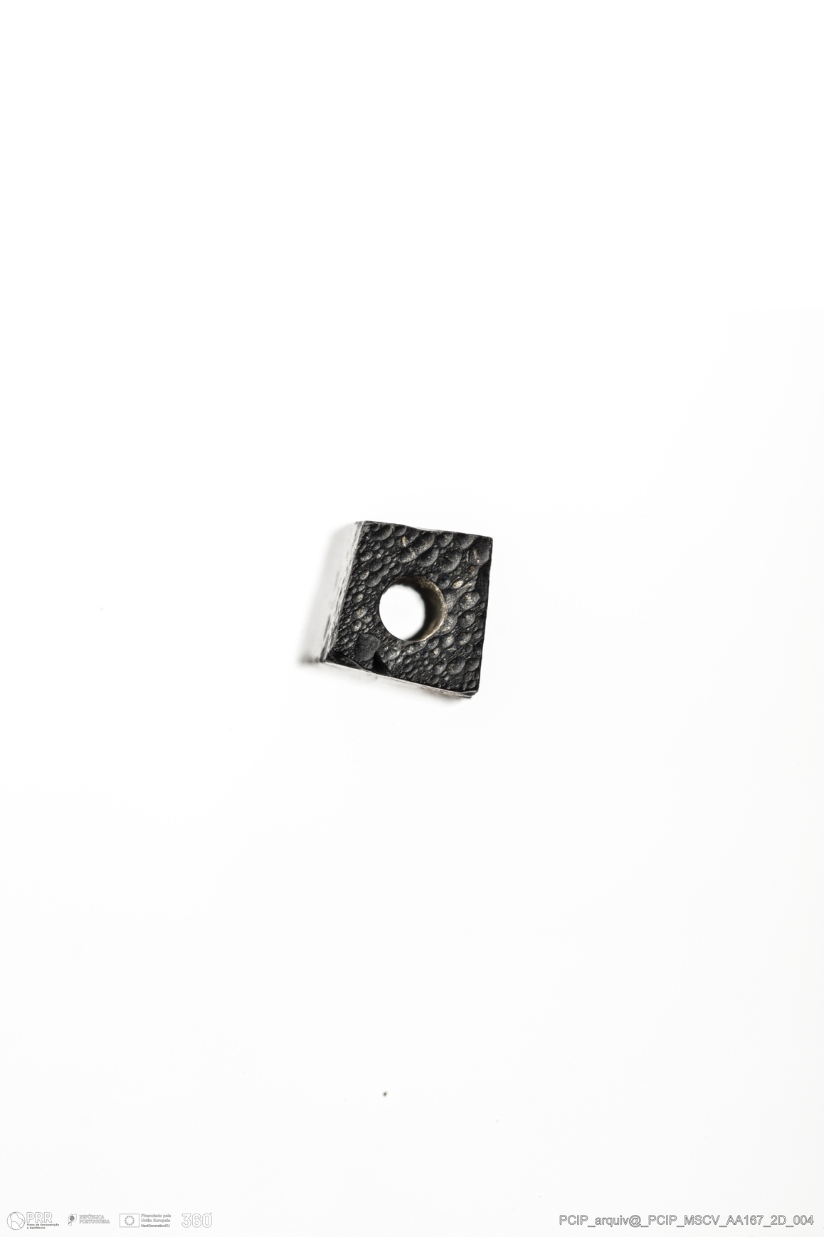 Matéria/Técnica: Azeviche; Cronologia: Século XVI- XVII; Autoria: Desconhecida; Dimensões: Comprimento: 11mm; Largura: 4,5mm; Espessura: 4,5mm.