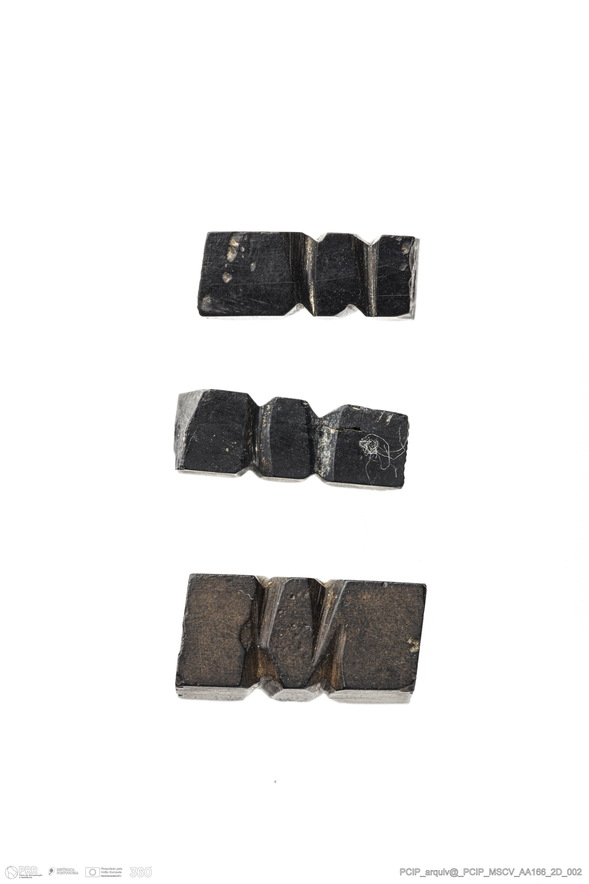 Matéria/Técnica: Azeviche; Cronologia: Século XVI- XVII; Autoria: Desconhecida; Dimensões: Comprimento: 13mm; Largura: 6mm; Espessura: 7mm.