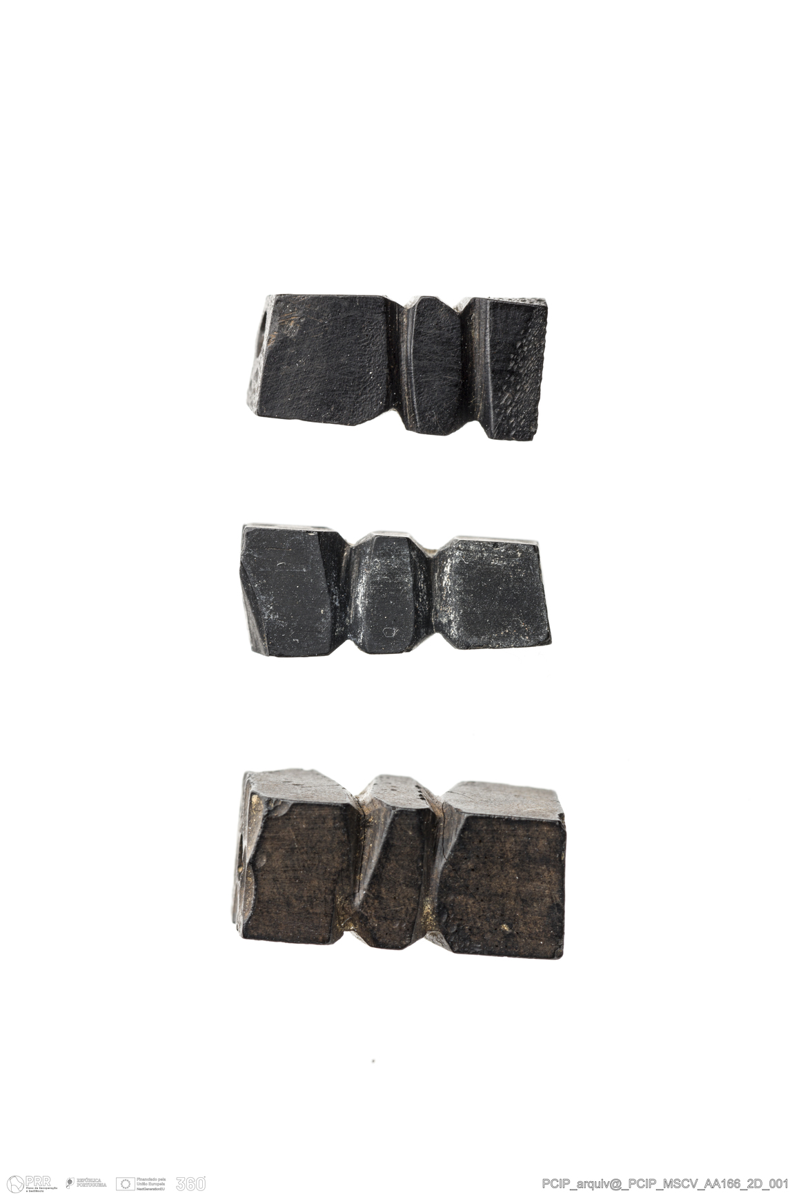 Matéria/Técnica: Azeviche; Cronologia: Século XVI- XVII; Autoria: Desconhecida; Dimensões: Comprimento: 13mm; Largura: 6mm; Espessura: 7mm.