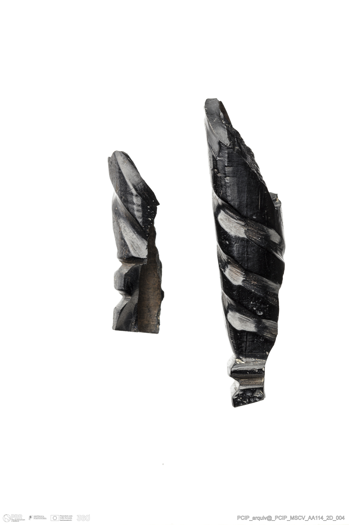 Matéria/Técnica: Azeviche; Cronologia: Século XVI- XVII; Autoria: Desconhecida; Dimensões: Comprimento: 37mm; Largura: 9,5mm; Espessura: 8mm.