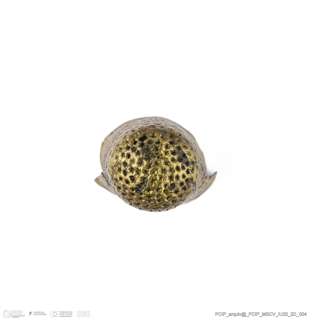 Matéria/Técnica: Liga de cobre; Cronologia: Século XVII; Autoria: Desconhecida; Dimensões: Altura: 20mm; Diâmetro: 17mm.