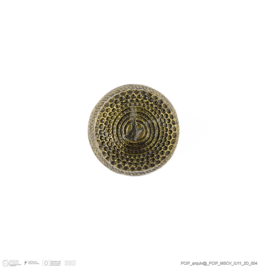 Matéria/Técnica: Liga de cobre; Cronologia: Século XVII; Autoria: Desconhecida; Dimensões: Altura: 23mm; Diâmetro: 17mm.