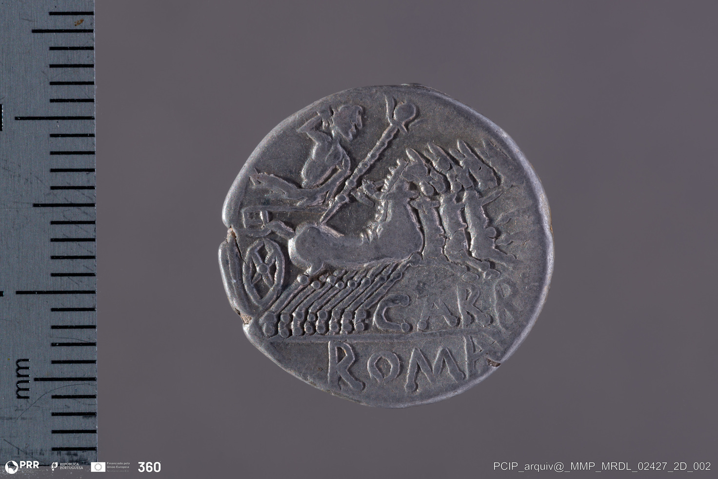 Matéria/Técnica: Prata; Cronologia: 111 ou 110 a.C.; Autoria: Desconhecida; Dimensões: Desconhecida.