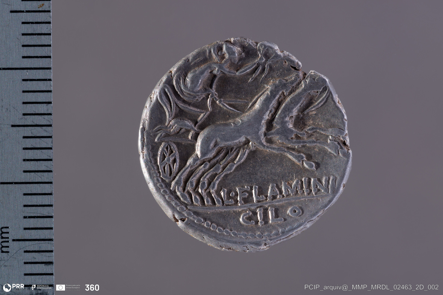 Matéria/Técnica: Prata; Cronologia: 109 ou 108 a.C.; Autoria: Desconhecida; Dimensões: Desconhecida.