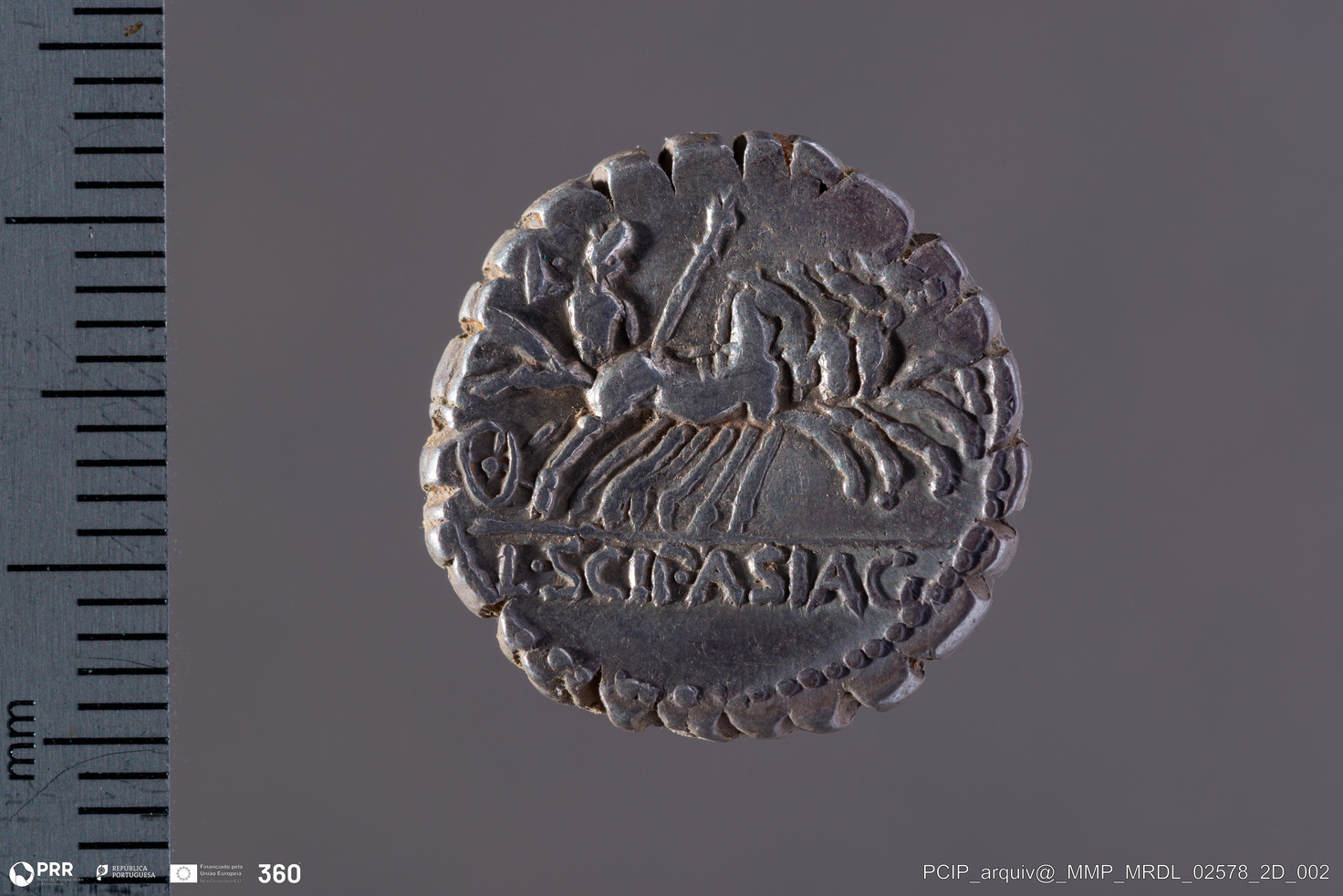 Matéria/Técnica: Prata; Cronologia: 106 a.C.; Autoria: Desconhecida; Dimensões: Desconhecida.