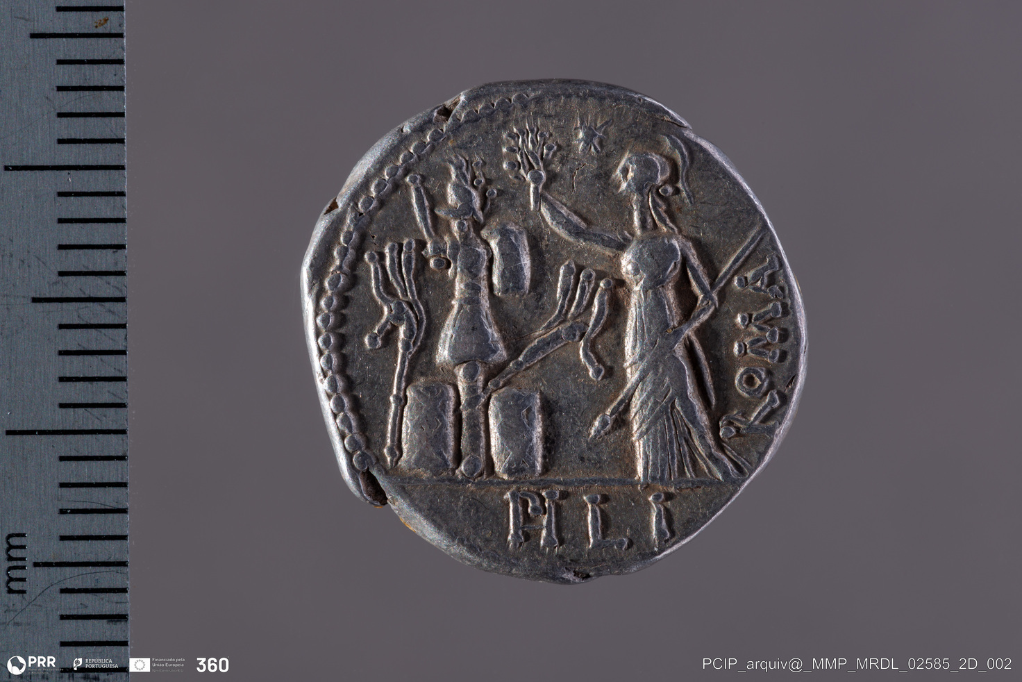 Matéria/Técnica: Prata; Cronologia: 119 a.C.; Autoria: Desconhecida; Dimensões: Desconhecida.