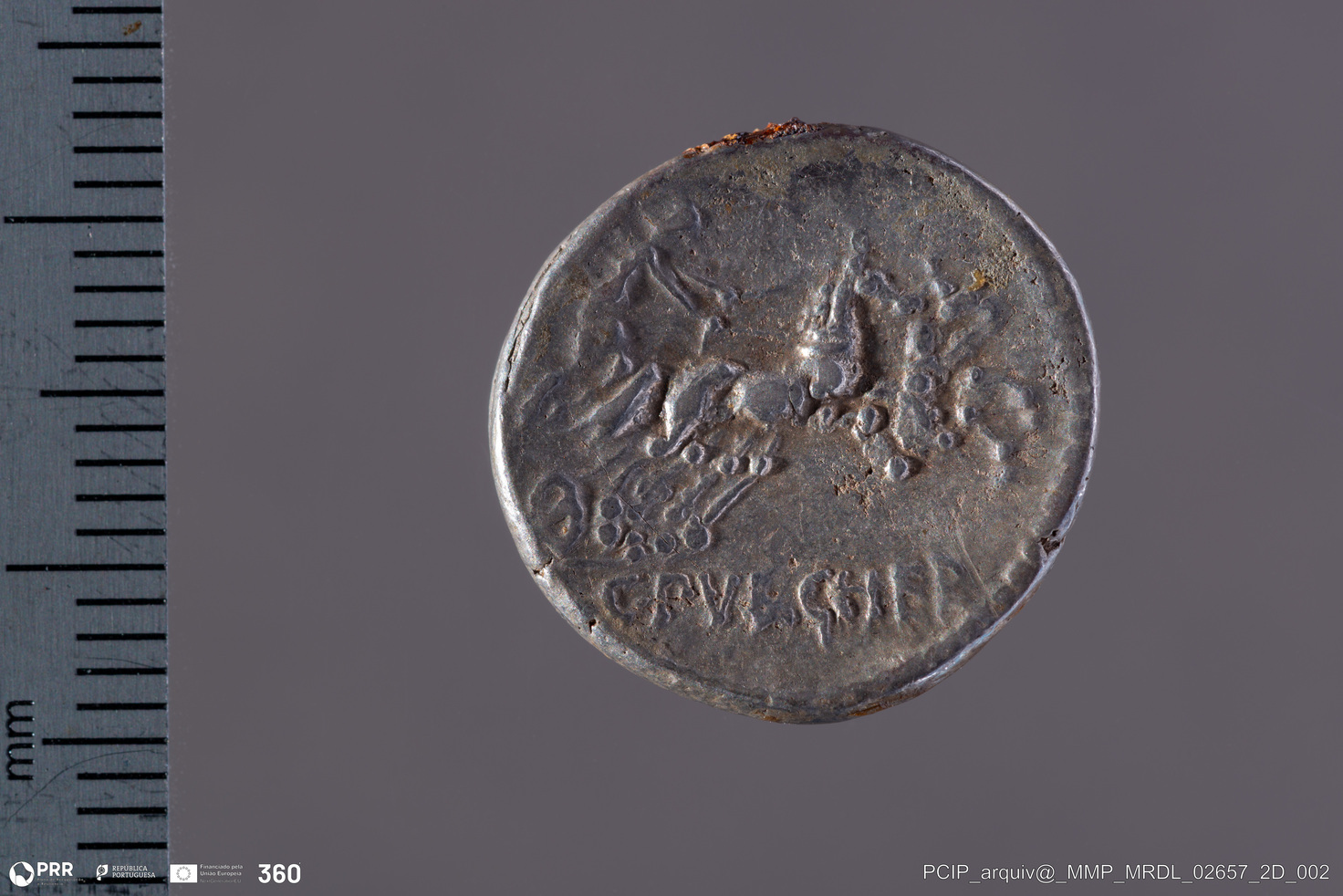 Matéria/Técnica: Prata; Cronologia: 110 ou 109 a.C.; Autoria: Desconhecida; Dimensões: Desconhecida.